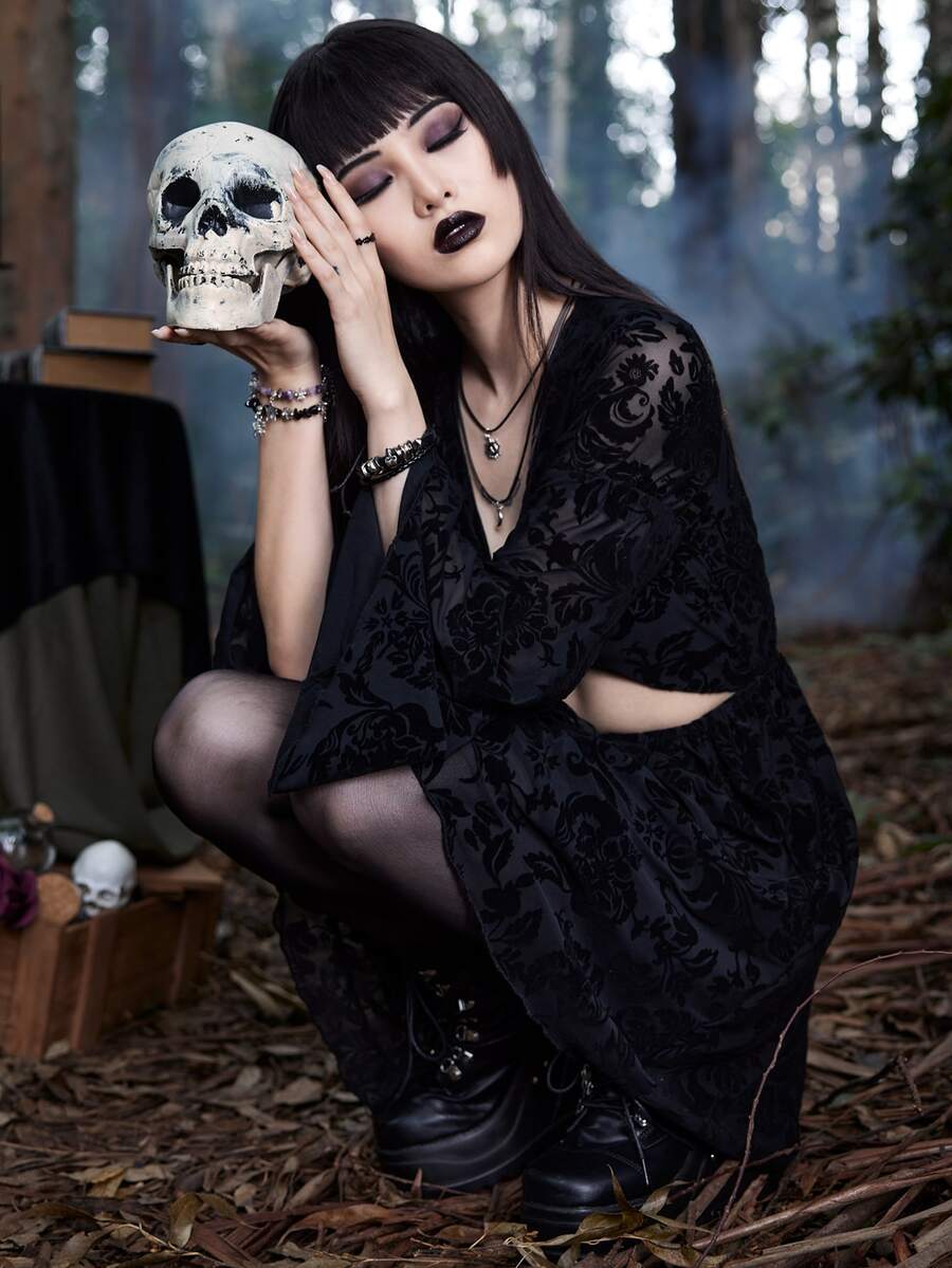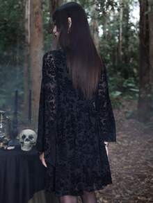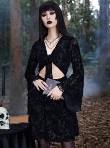 Goth Vestido floral con cordón delantero de manga con volante con abertura