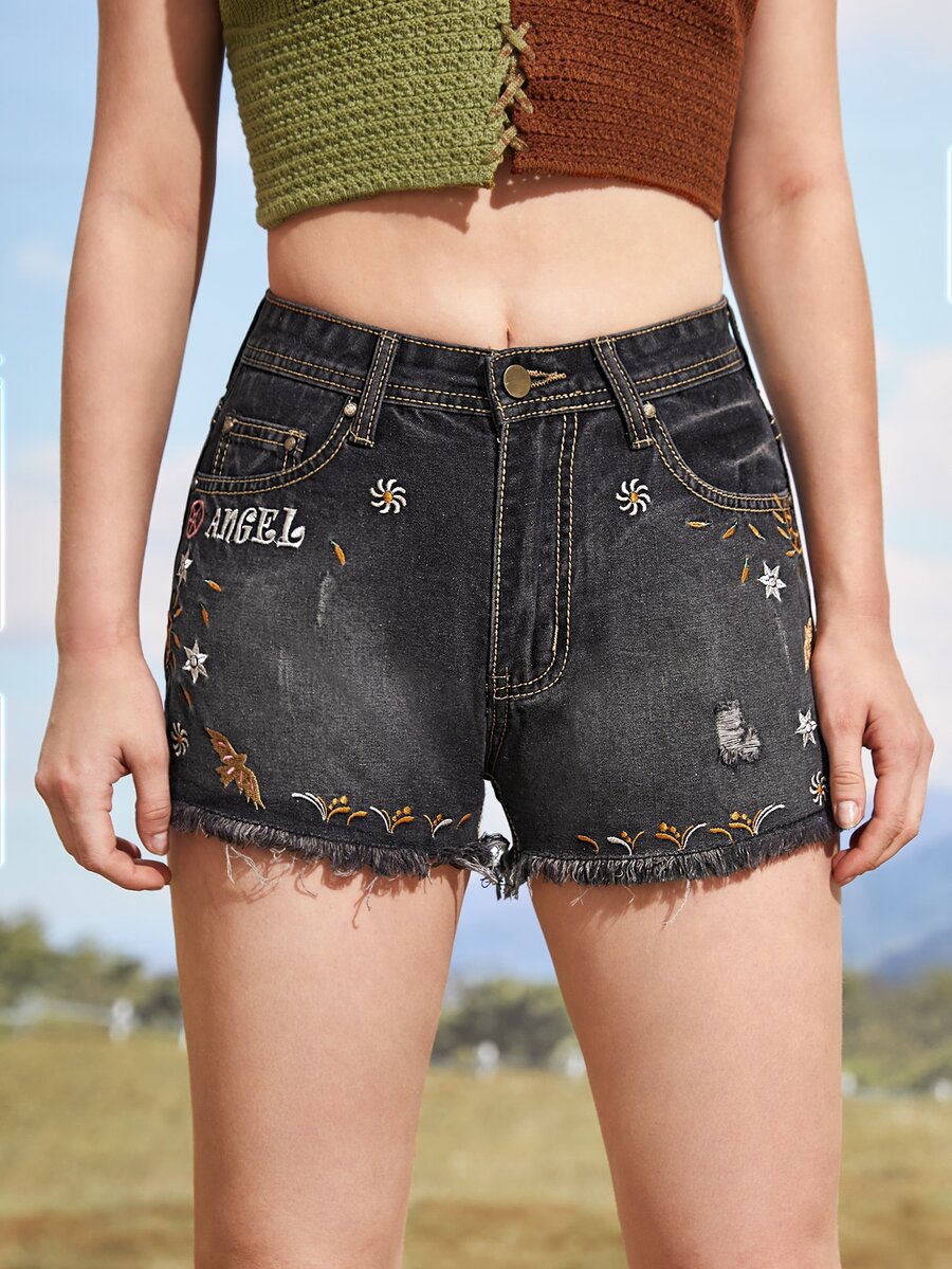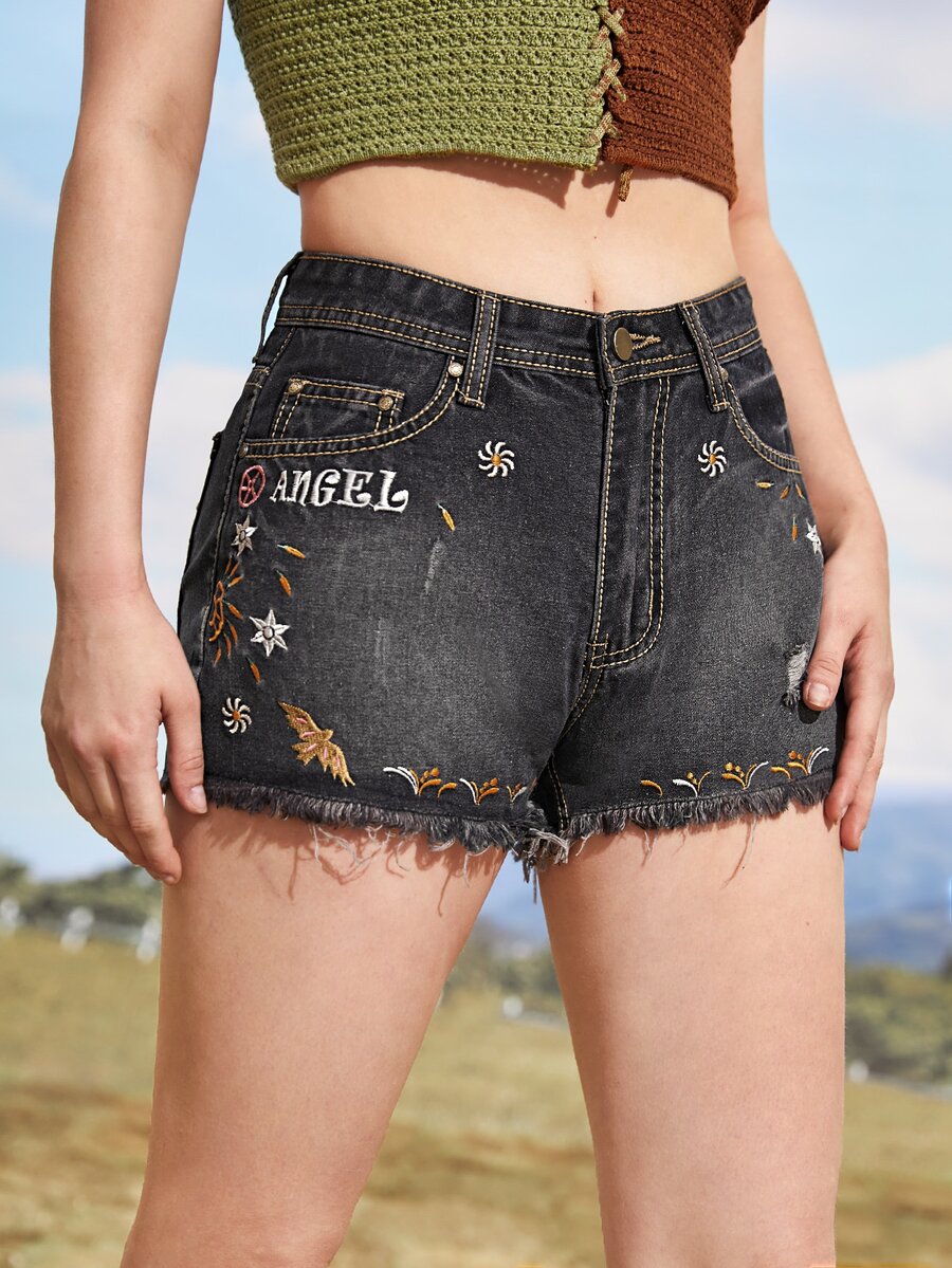Goth Shorts en mezclilla con bordado de letra bajo crudo