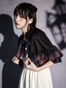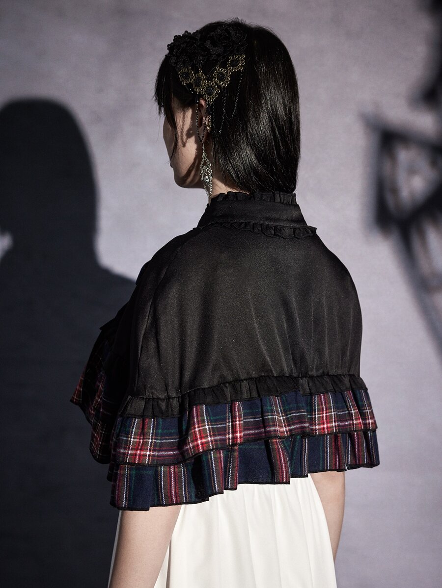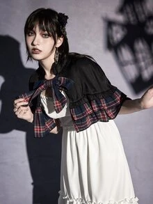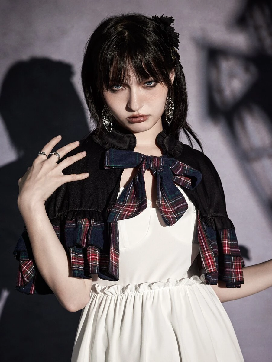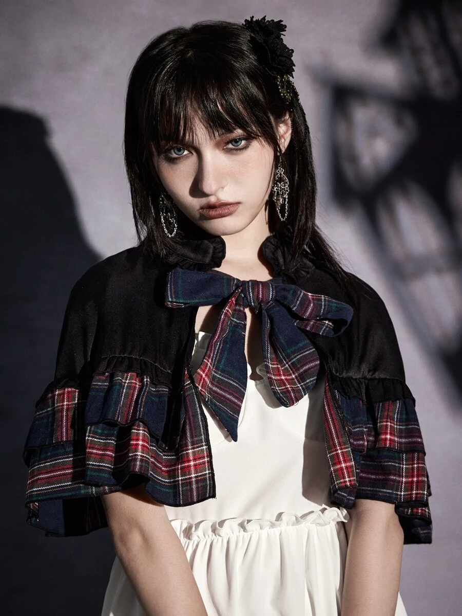 Goth Abrigo capa de cuadros fruncido con cordón delantero