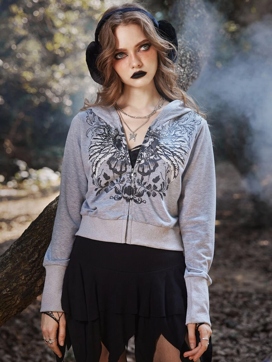 Capucha con cremallera ala & con estampado floral