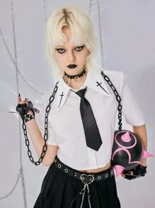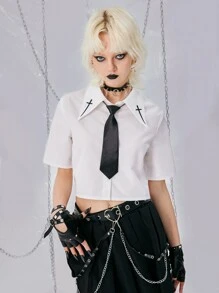 Grunge Punk Camisa cruzado con estampado con botón delantero