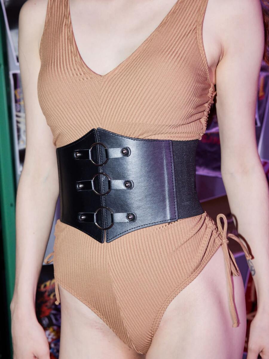 Grunge Punk Cinturón corsé tachuela & con diseño de aro