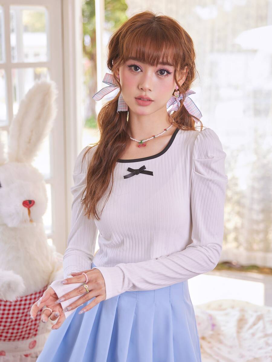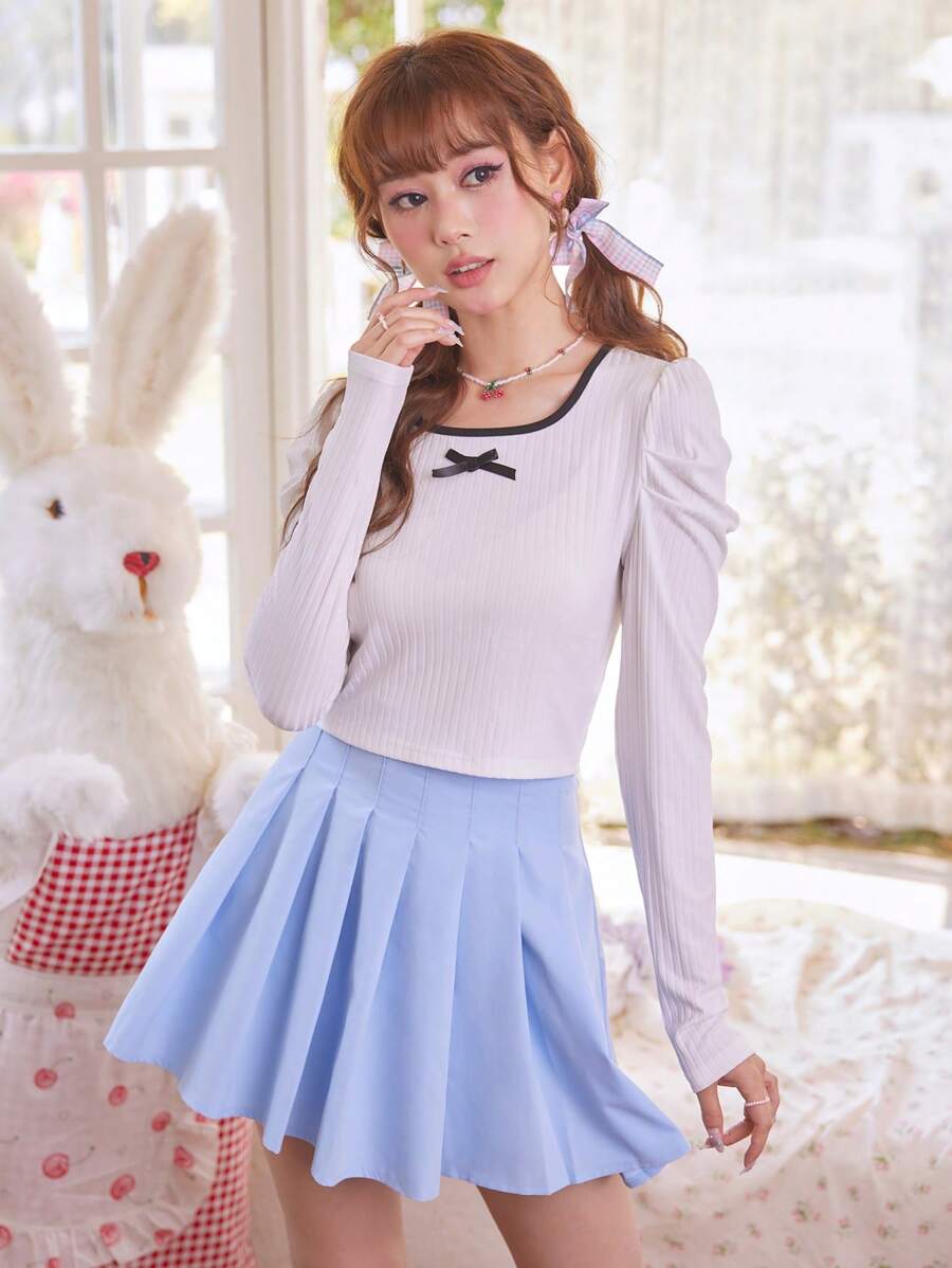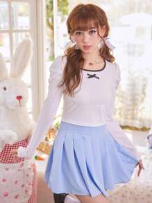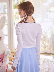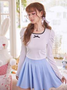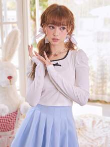 Kawaii Camisetas de Mujer Lazo Canalé Ribete en contraste Liso Casual