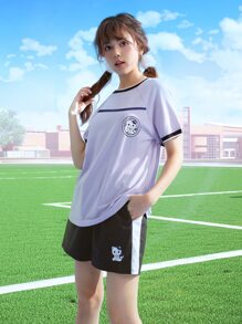 Camiseta con estampado de dibujos animados de manga raglán & corto