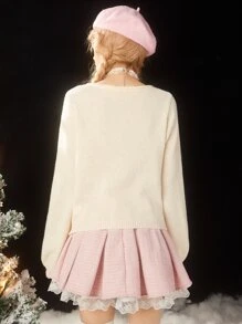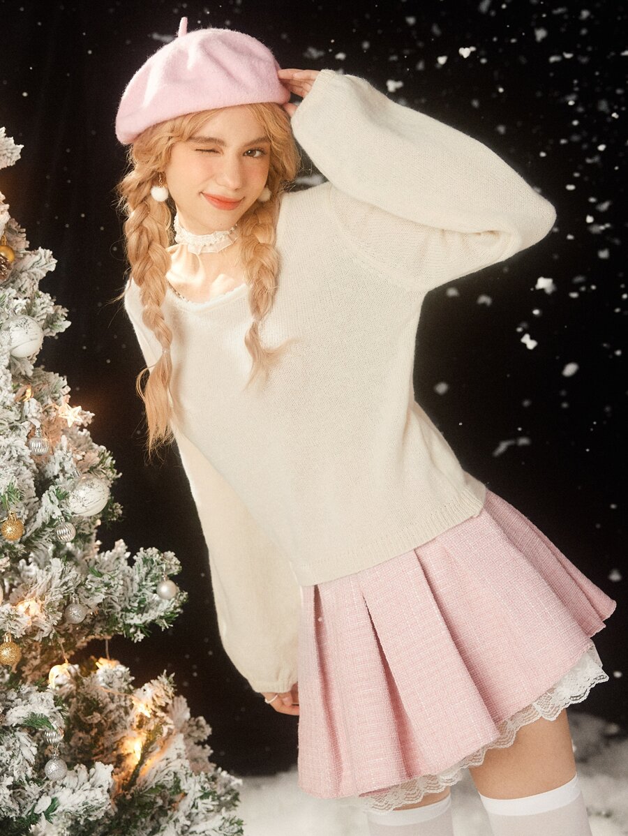 Kawaii Jersey Navidad unicolor de hombros caídos