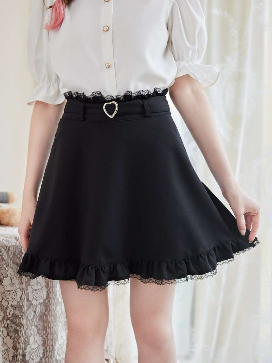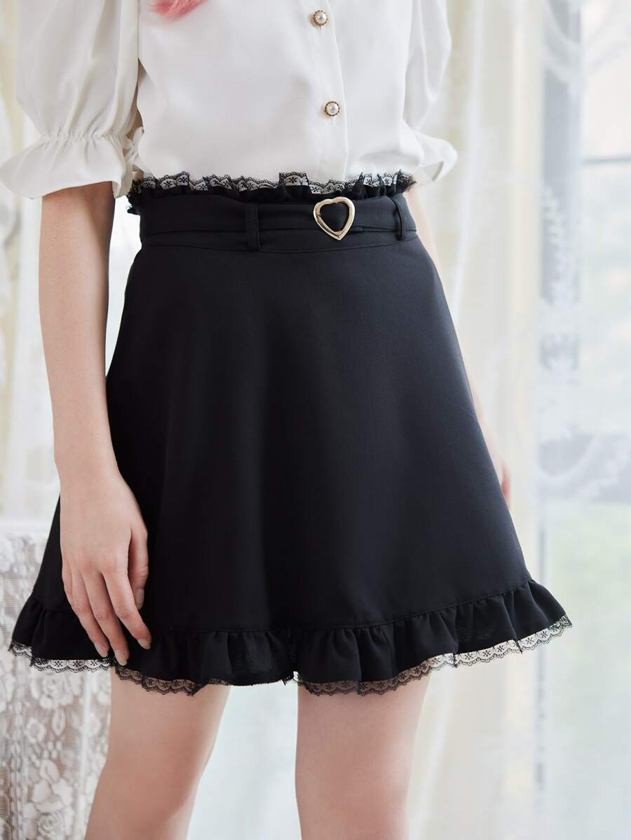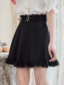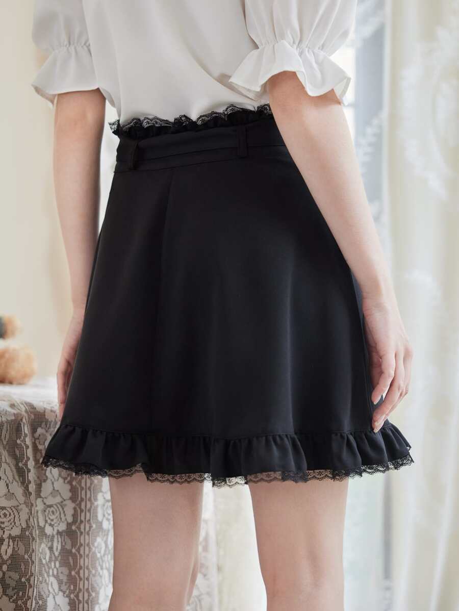 Kawaii Falda con encaje en contraste bajo con fruncido
