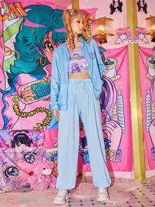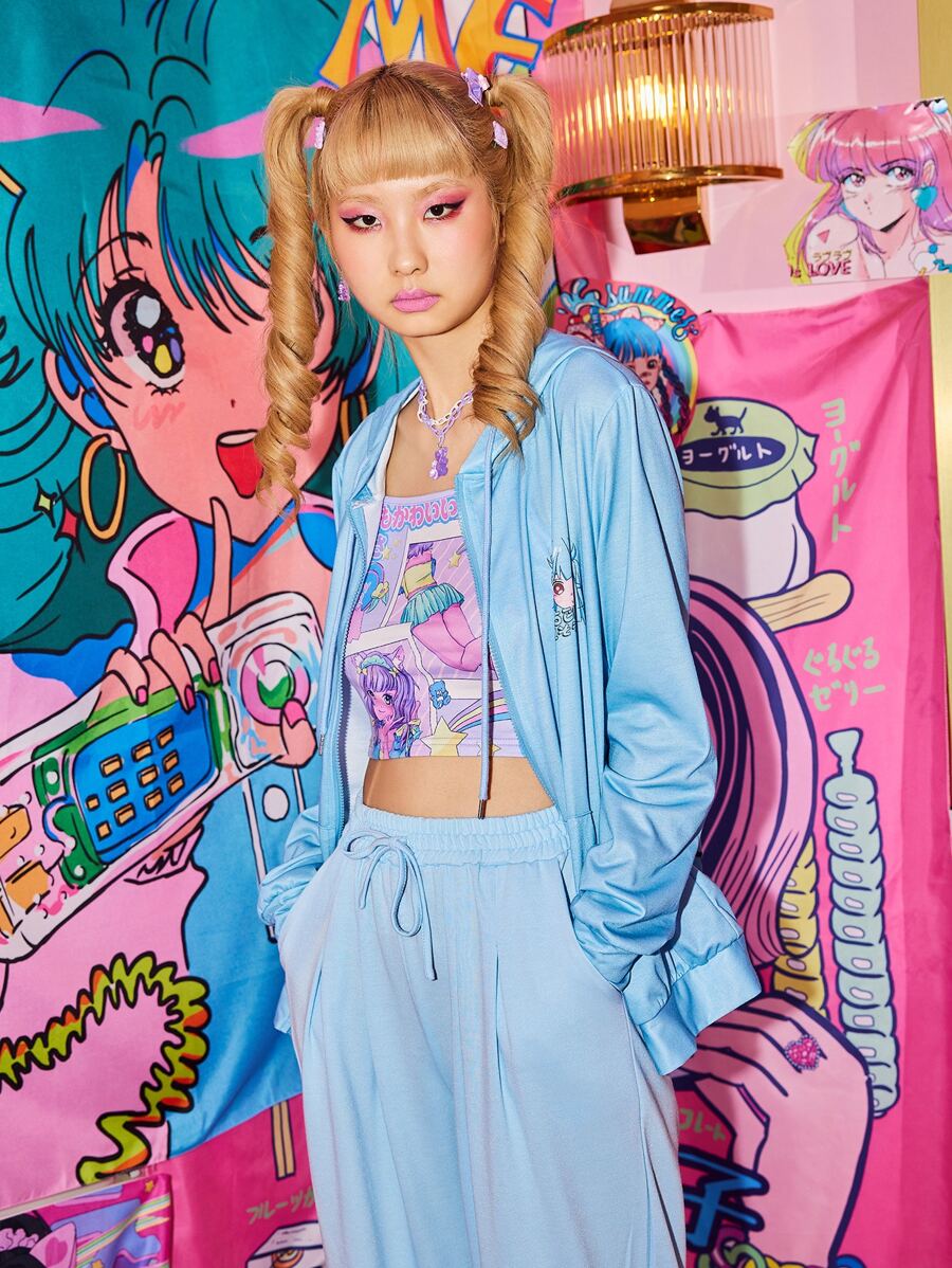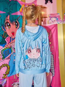 Kawaii Capucha con cremallera con estampado de figura con bolsillo