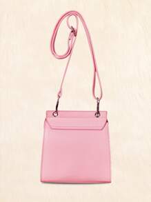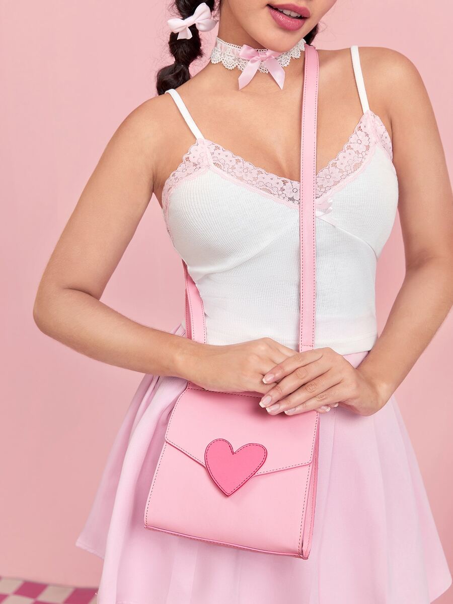 Kawaii Bolsa cuadrada mini con adorno de corazón con solapa