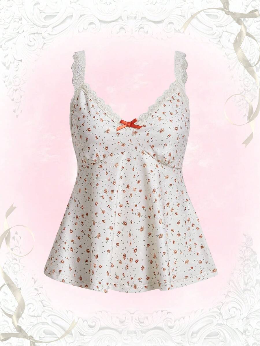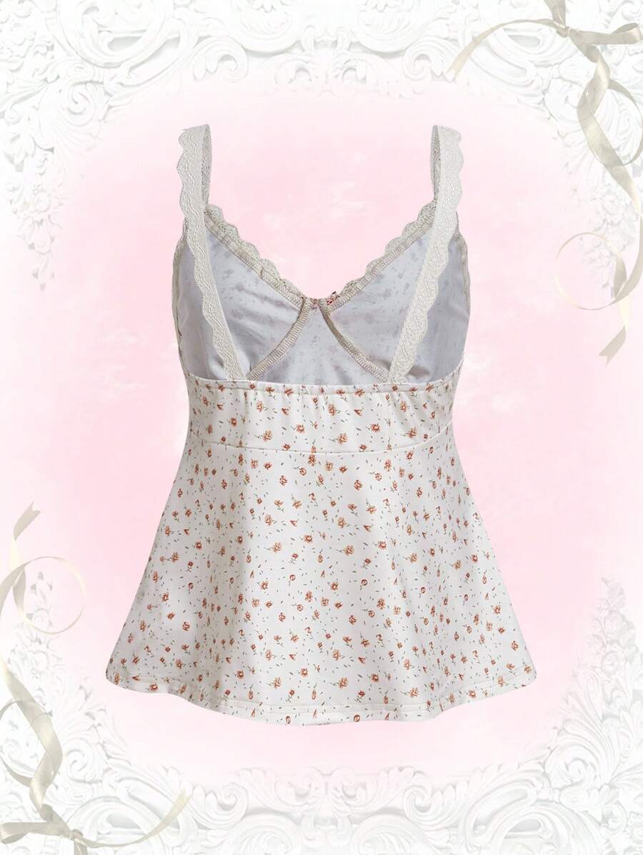 Top de tirantes con estampado floral ribete con encaje