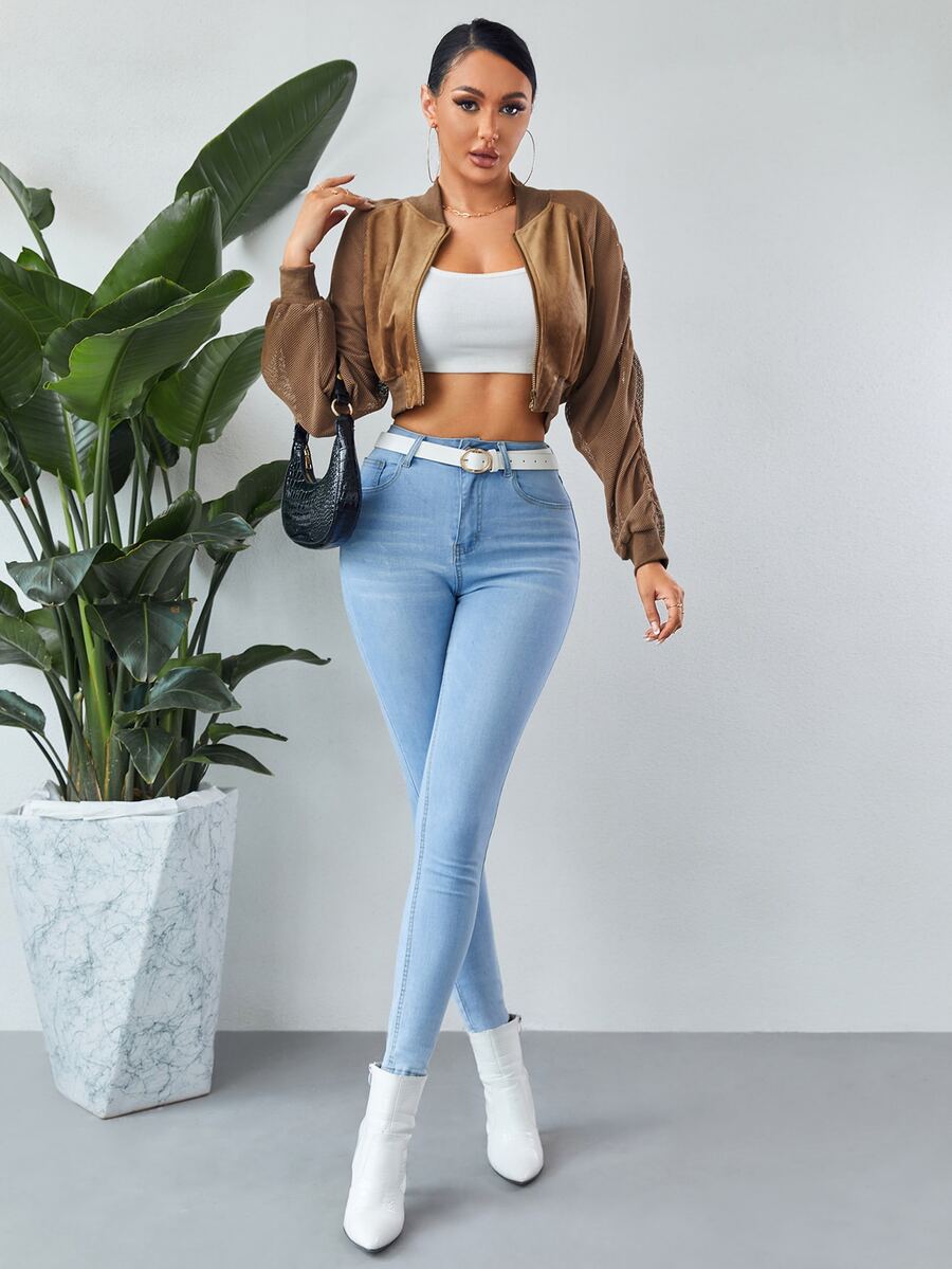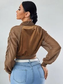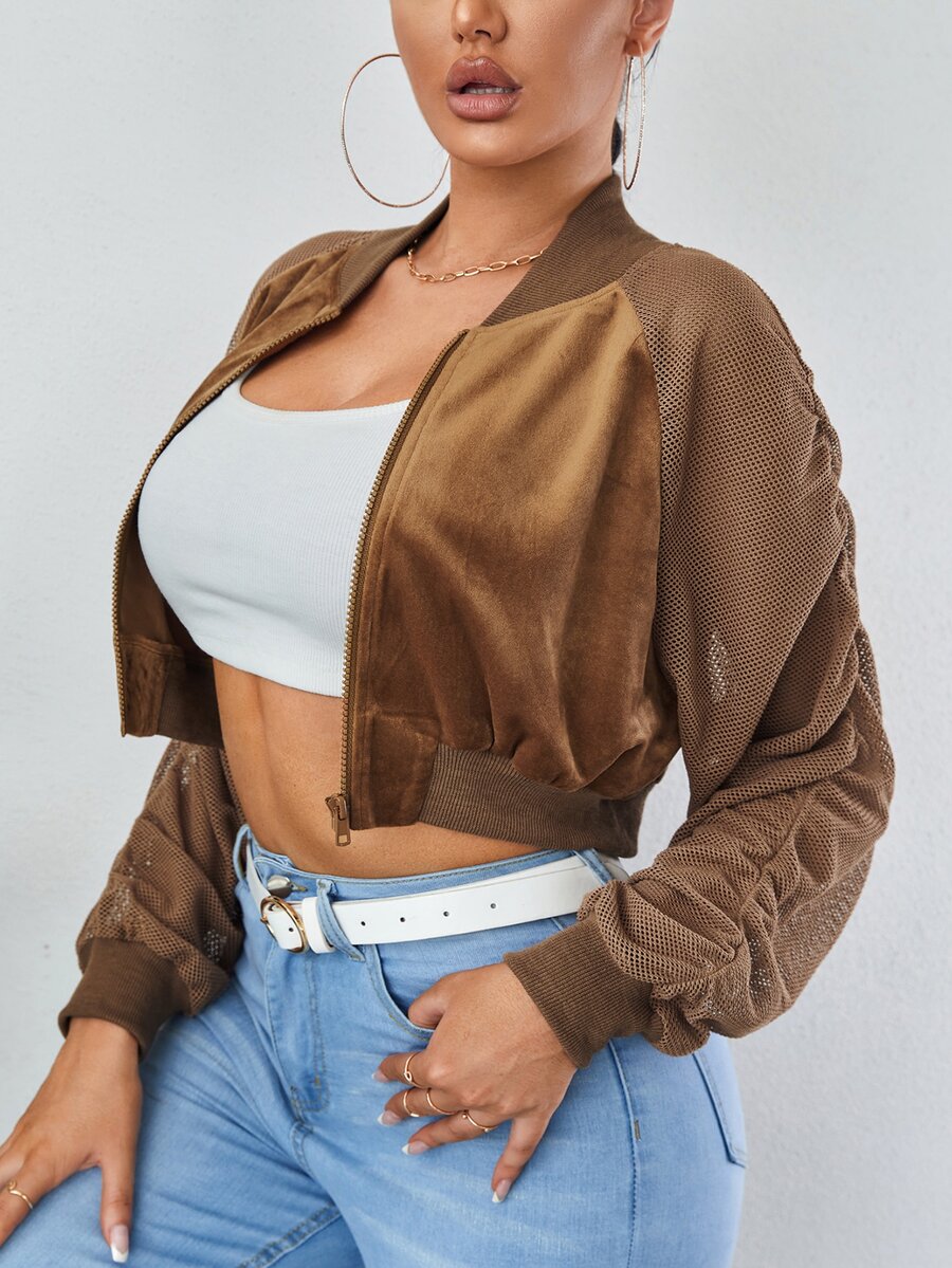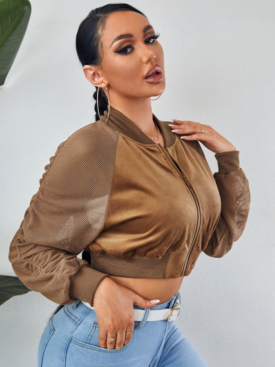 Cazadora tipo bomber de manga raglán con cremallera corto