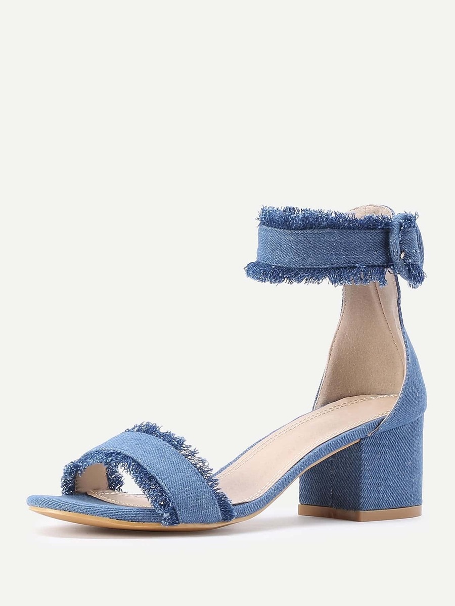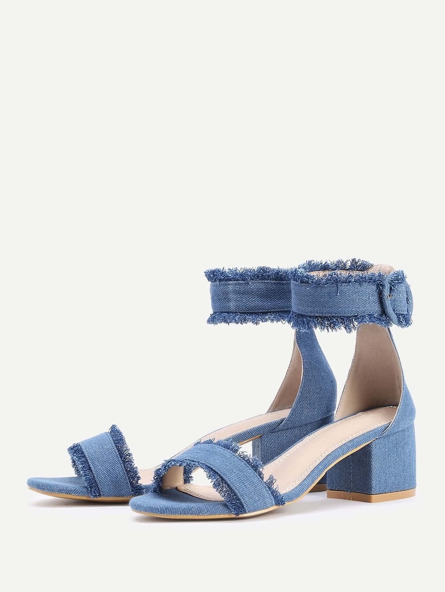 Sandalias de tacón cuadrado en denim
