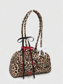 Goth Retro Cute Polka Dot Bowknot Decor Cherry Heart Shoulder Underarm Bag With Multiple Pockets For Women