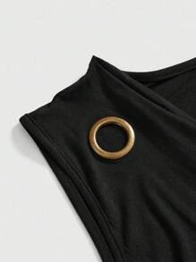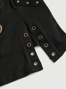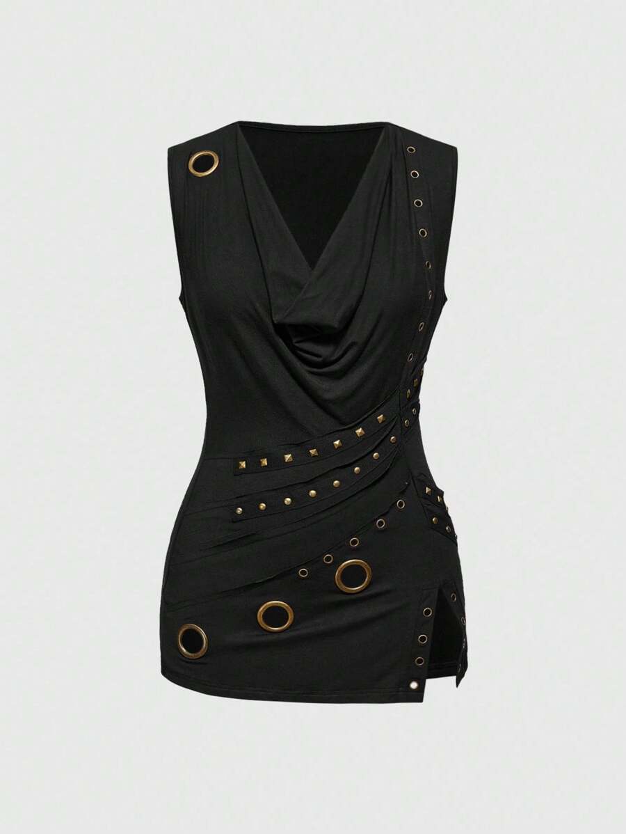 Grunge Punk Top ajustado de tirantes con cuello con escote profundo, de corte dividido y decoración con remaches de estilo retro punk para mujer