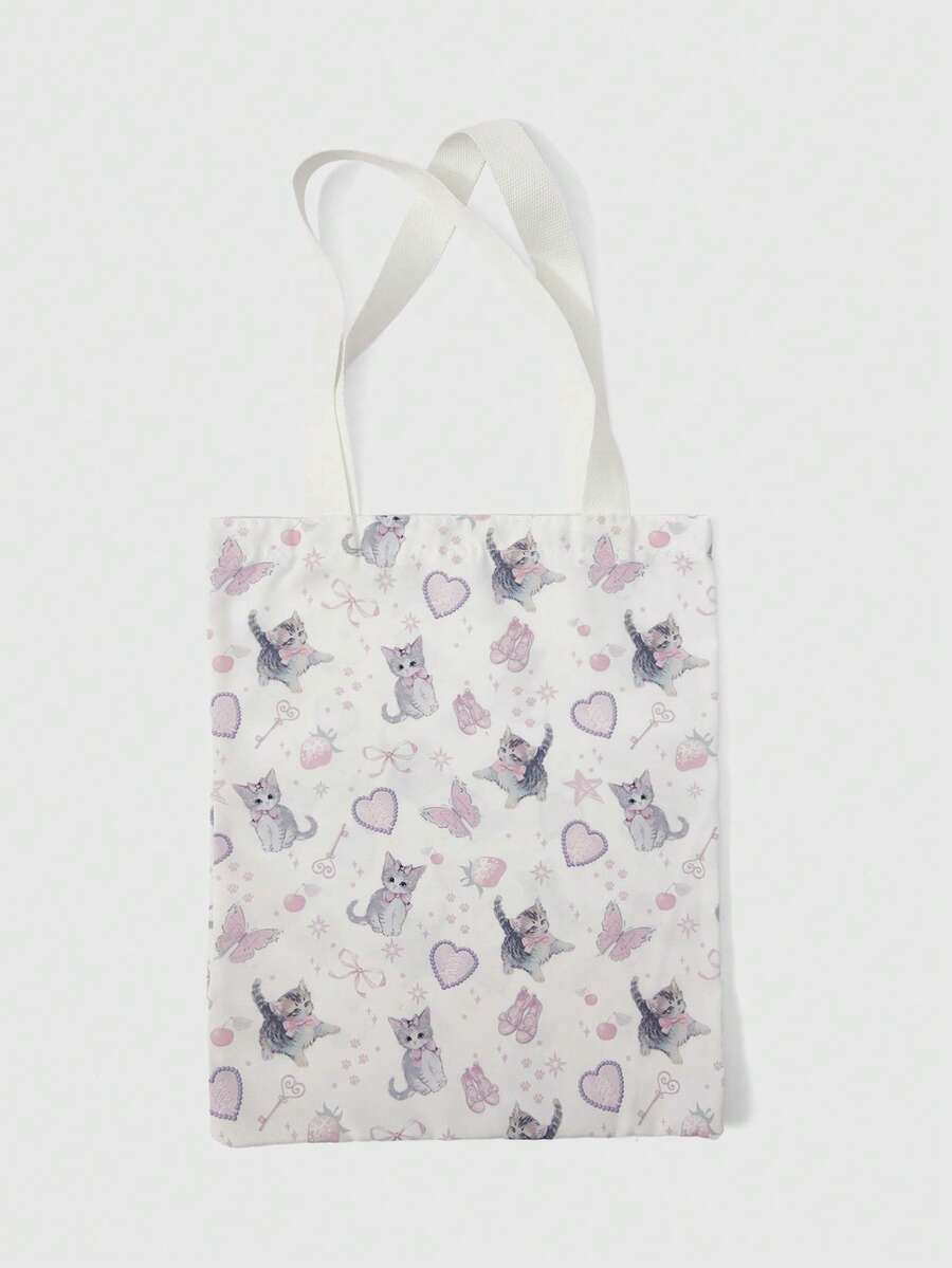 Kawaii Bolsa de lona reutilizable con estampado de ojo/luna/estrella en todo el diseño, bolso de hombro adecuado para ir de compras