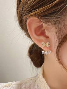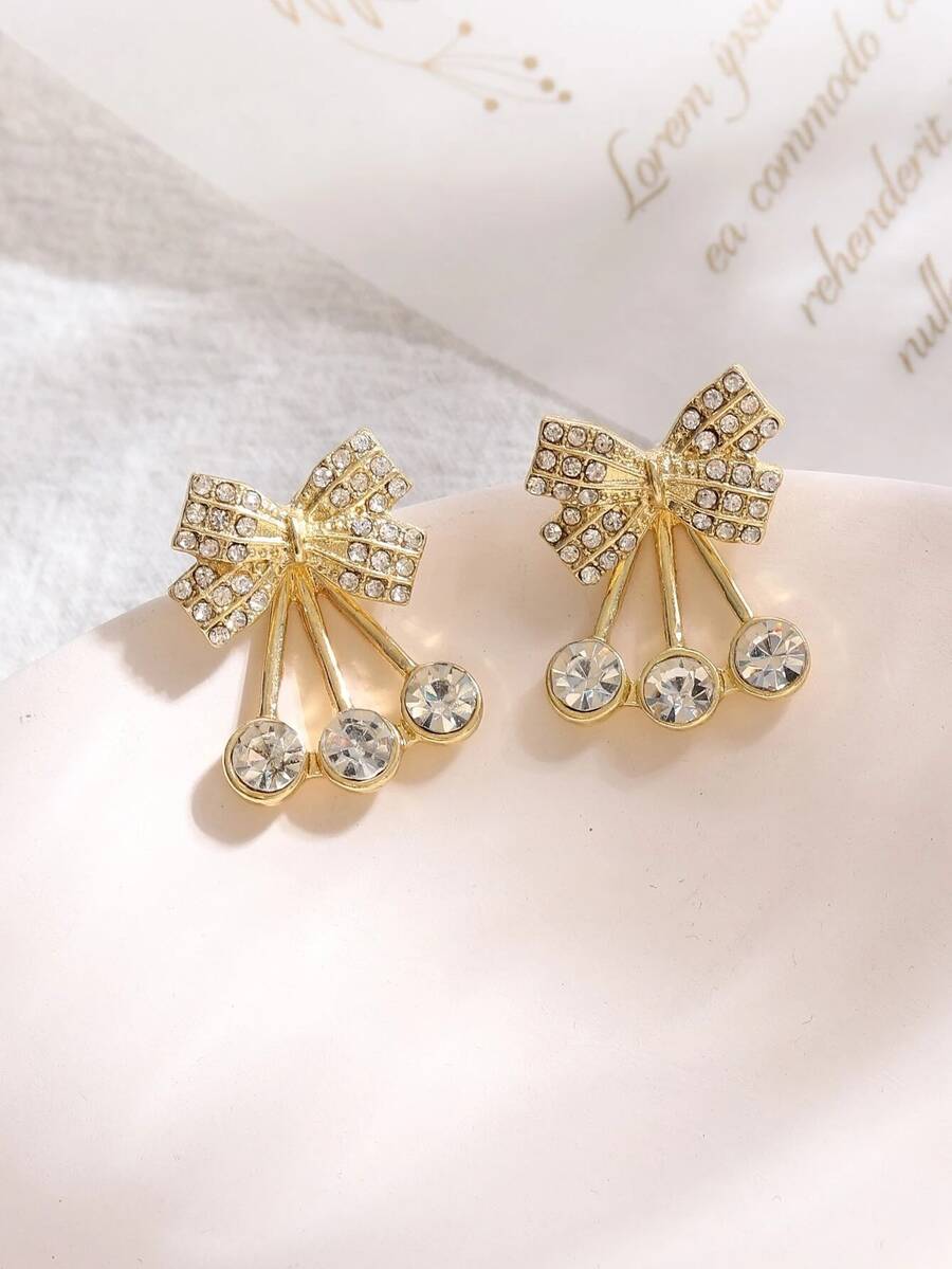 Pendientes chaqueta con diamante de imitación con diseño de lazo