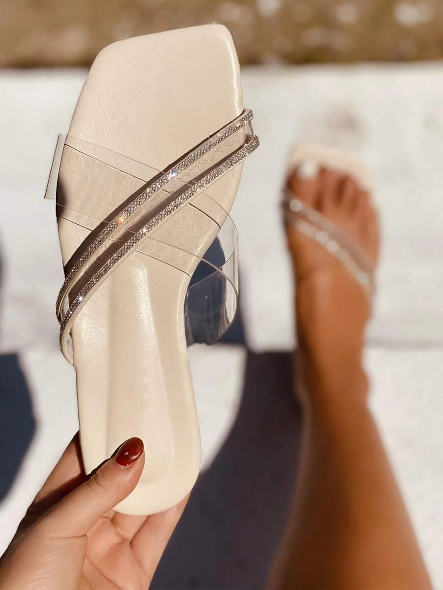 Sandalias chanclas con tira transparente con diamante de imitación