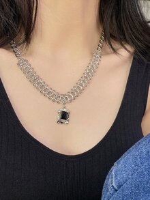 Collar de cadena con diseño de diamante de imitación