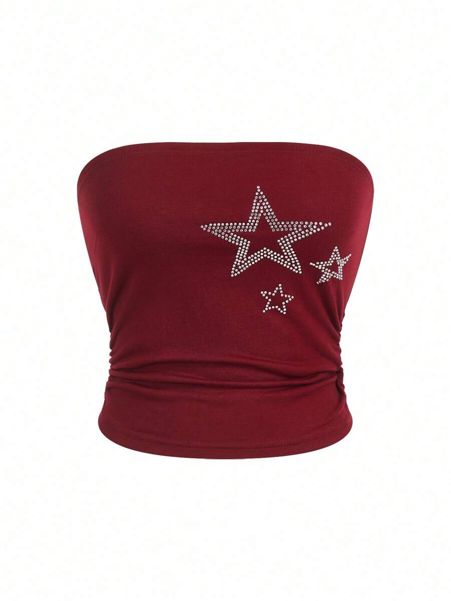 Grunge Punk Top sin tirantes con decoración de strass con diseño de estrellas para señoras, para el carnaval