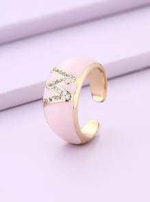 Anillo con diamante de imitación con estampado de letra