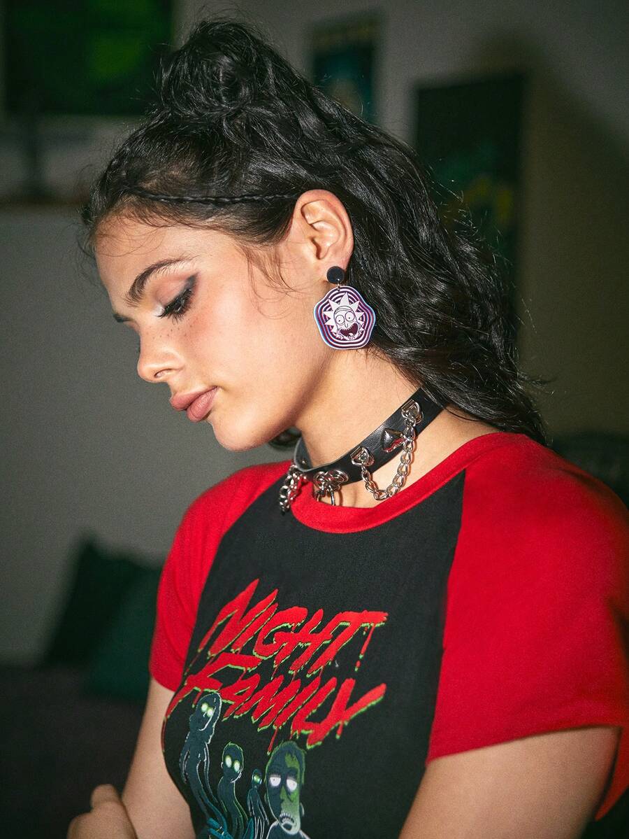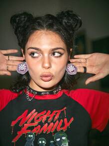 Rick and Morty | ROMWE 2 piezas Pendientes largos dulce acrílico con estampado de figura de dibujos animados para mujeres para decoración diaria