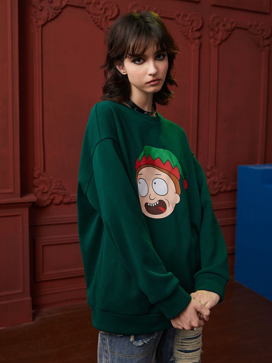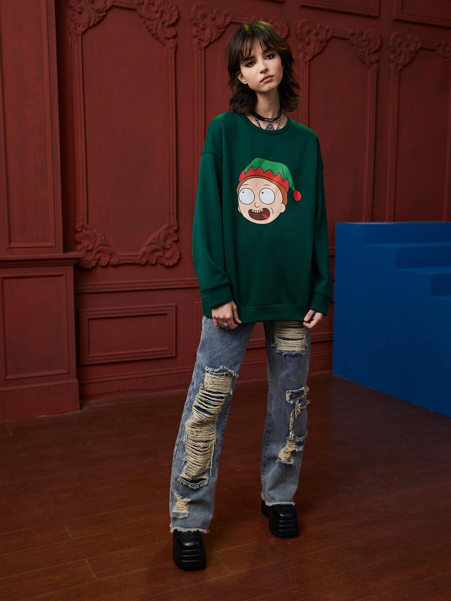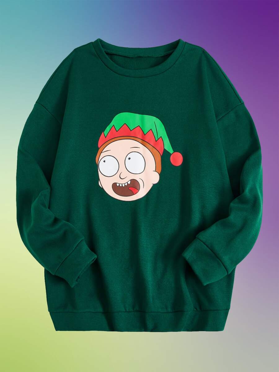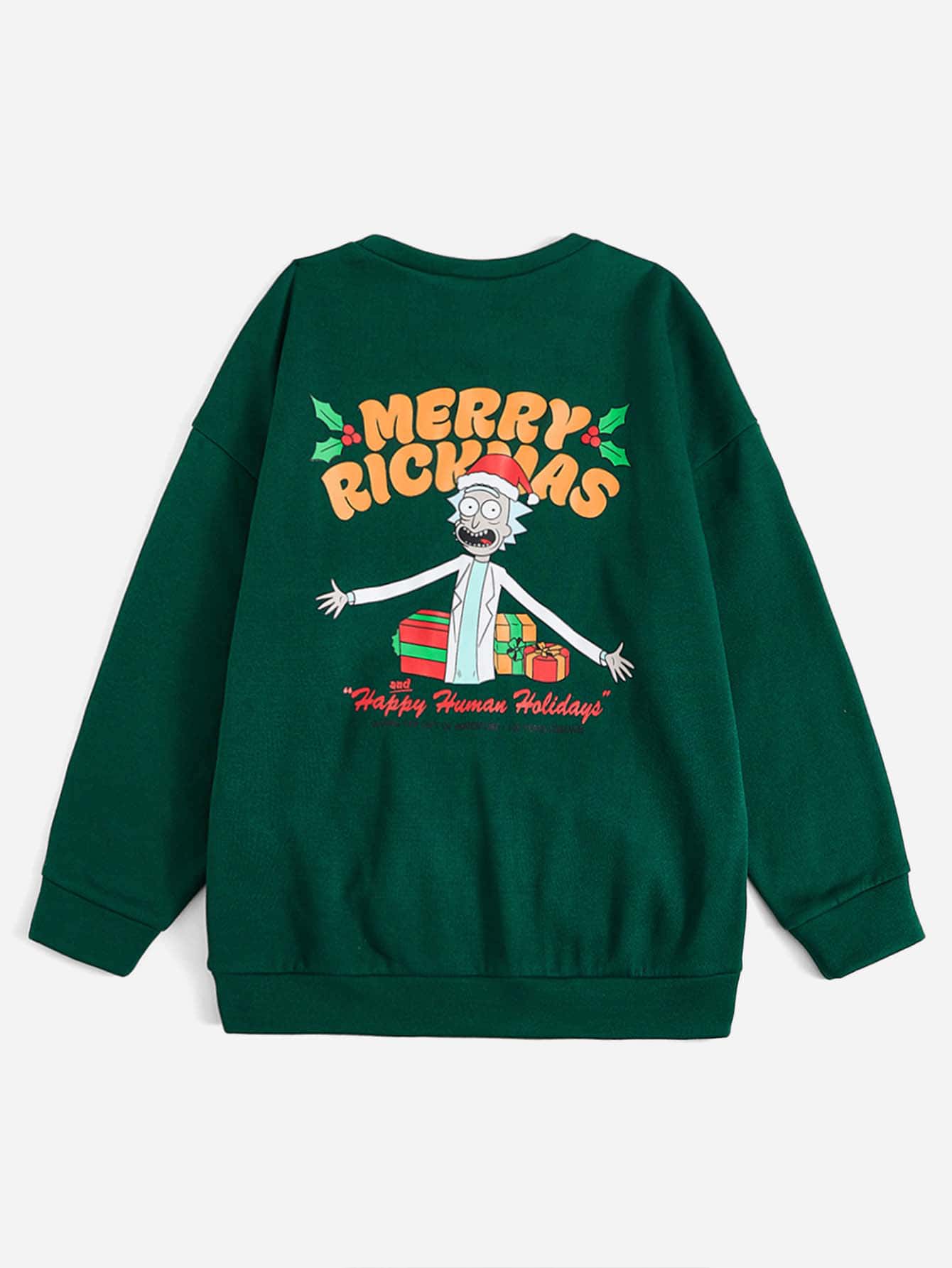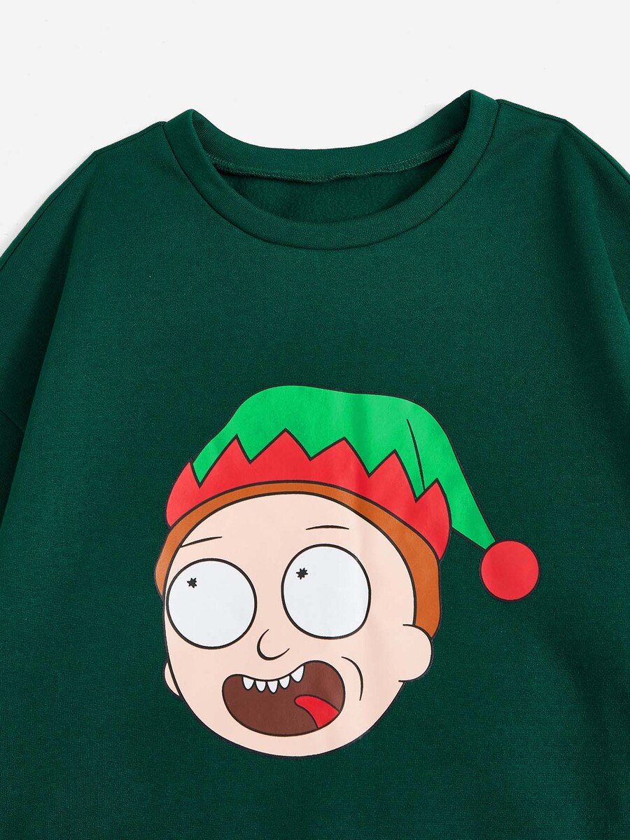 Rick and Morty | ROMWE Sudadera Navidad con estampado de letra y dibujo de hombros caídos