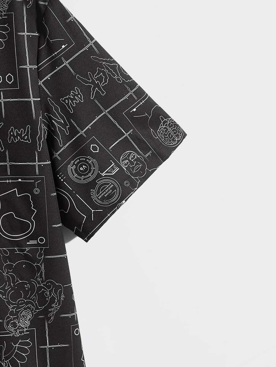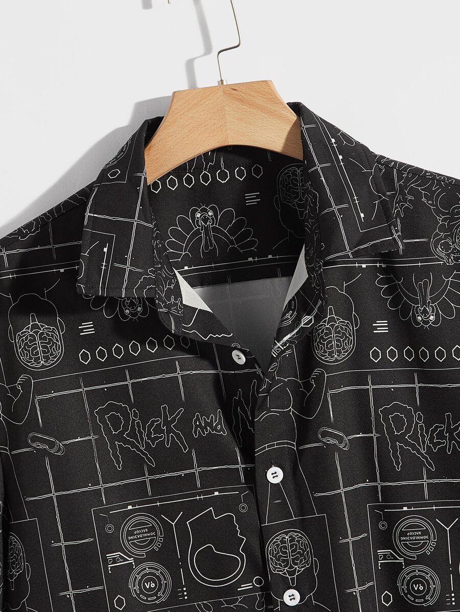 Rick and Morty | ROMWE Hombres Camisa con estampado de dibujos animados