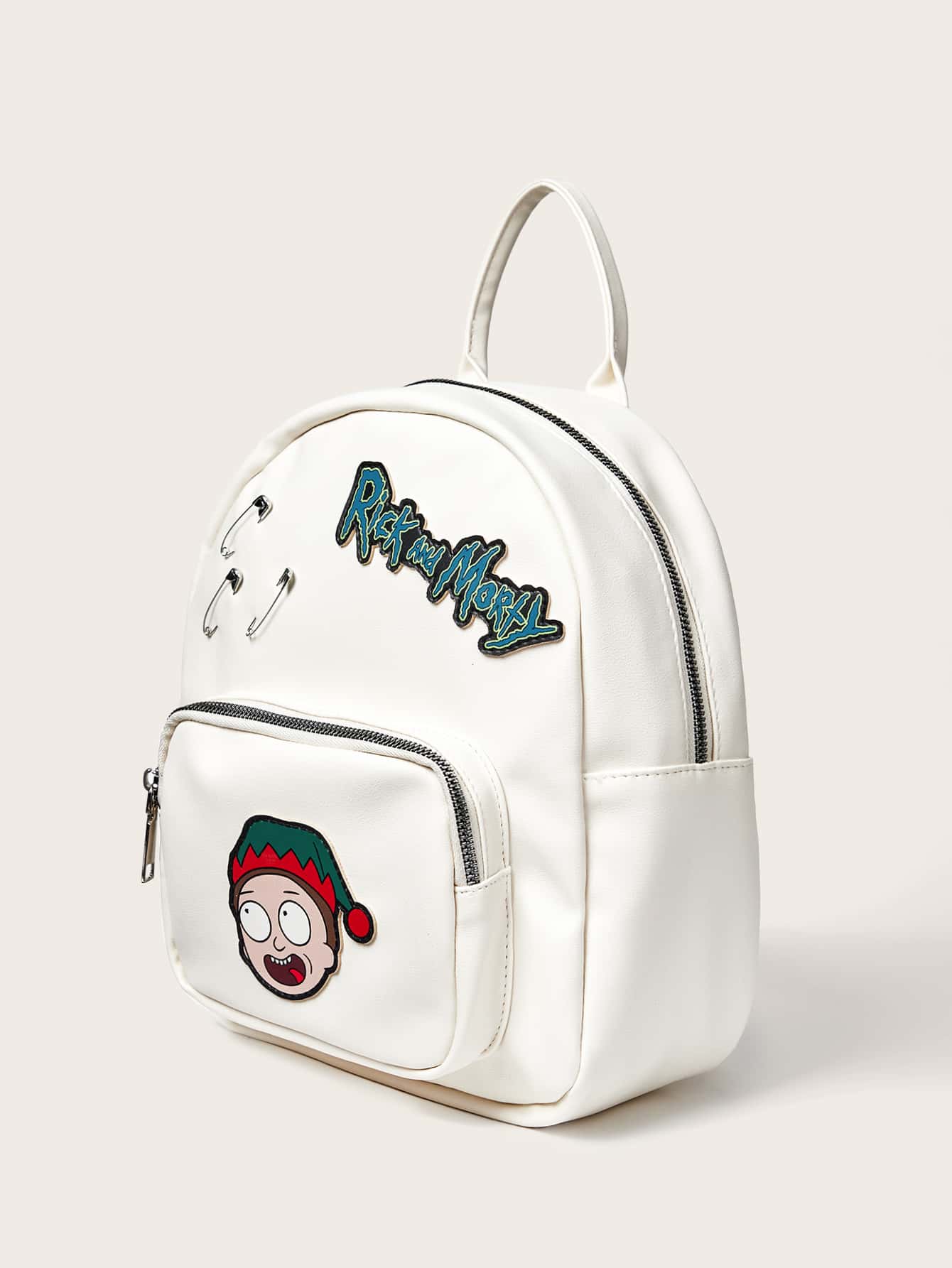 Rick and Morty | ROMWE Mochila clásica con letra & figura con diseño de parche