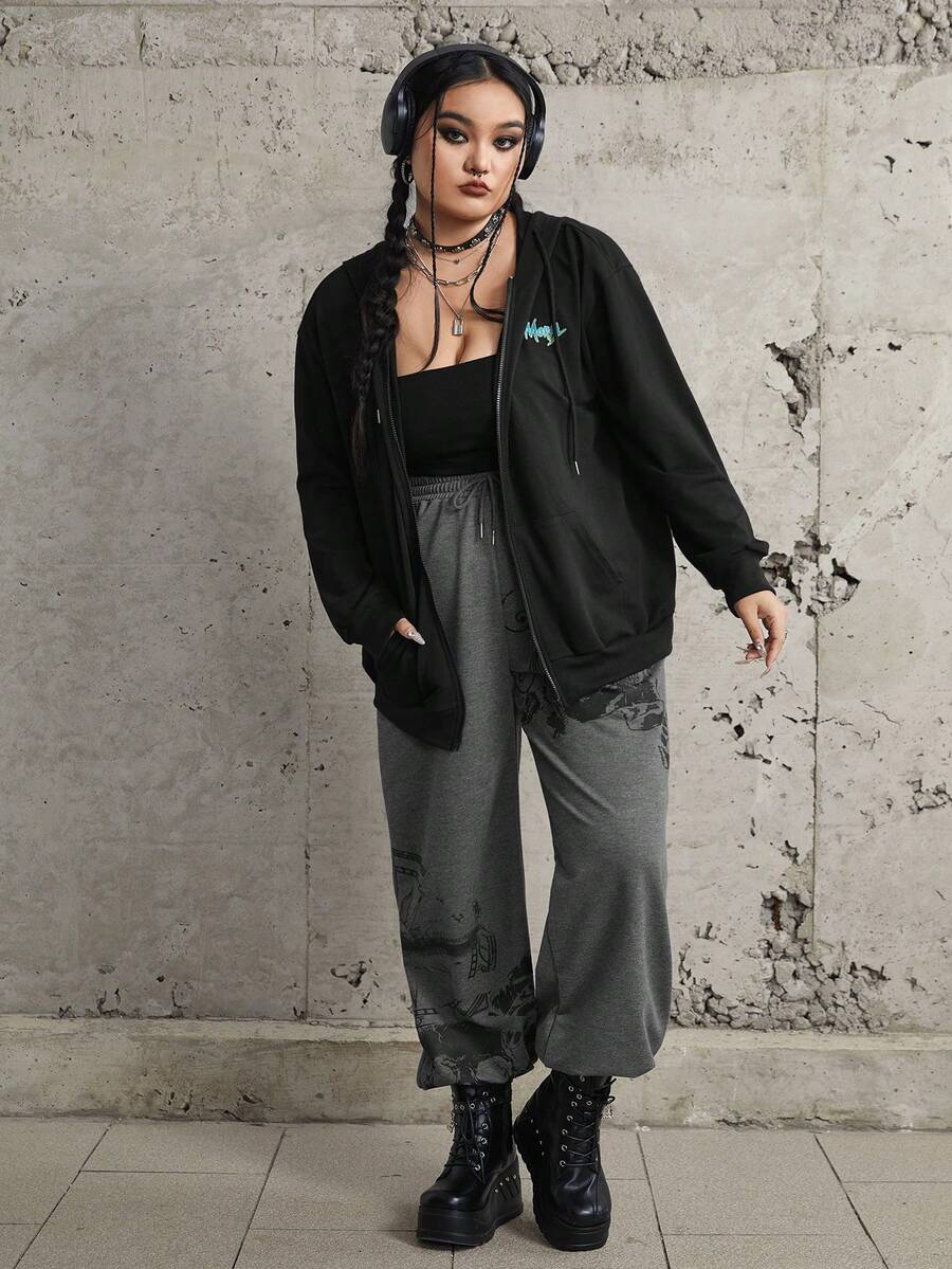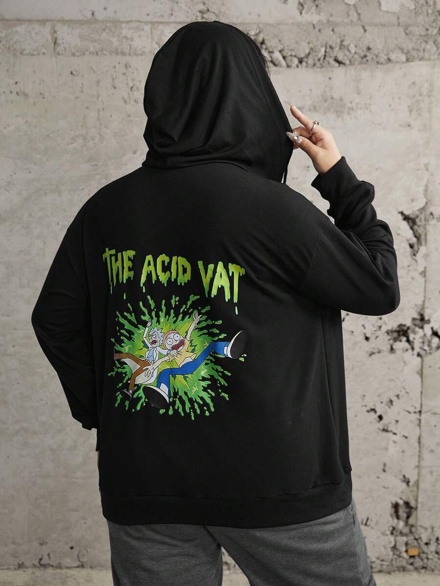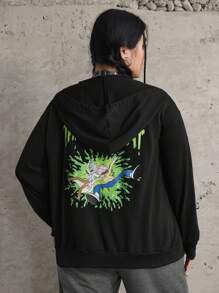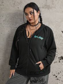 Rick and Morty | ROMWE Sudadera Con Capucha Con Cremallera Con Dibujos Animados Y Gráficos De Letras