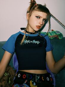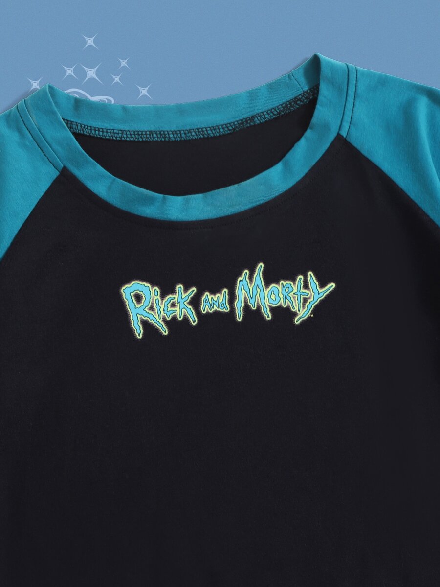 Rick and Morty | ROMWE Camiseta calle de color combinado con estampado de letra