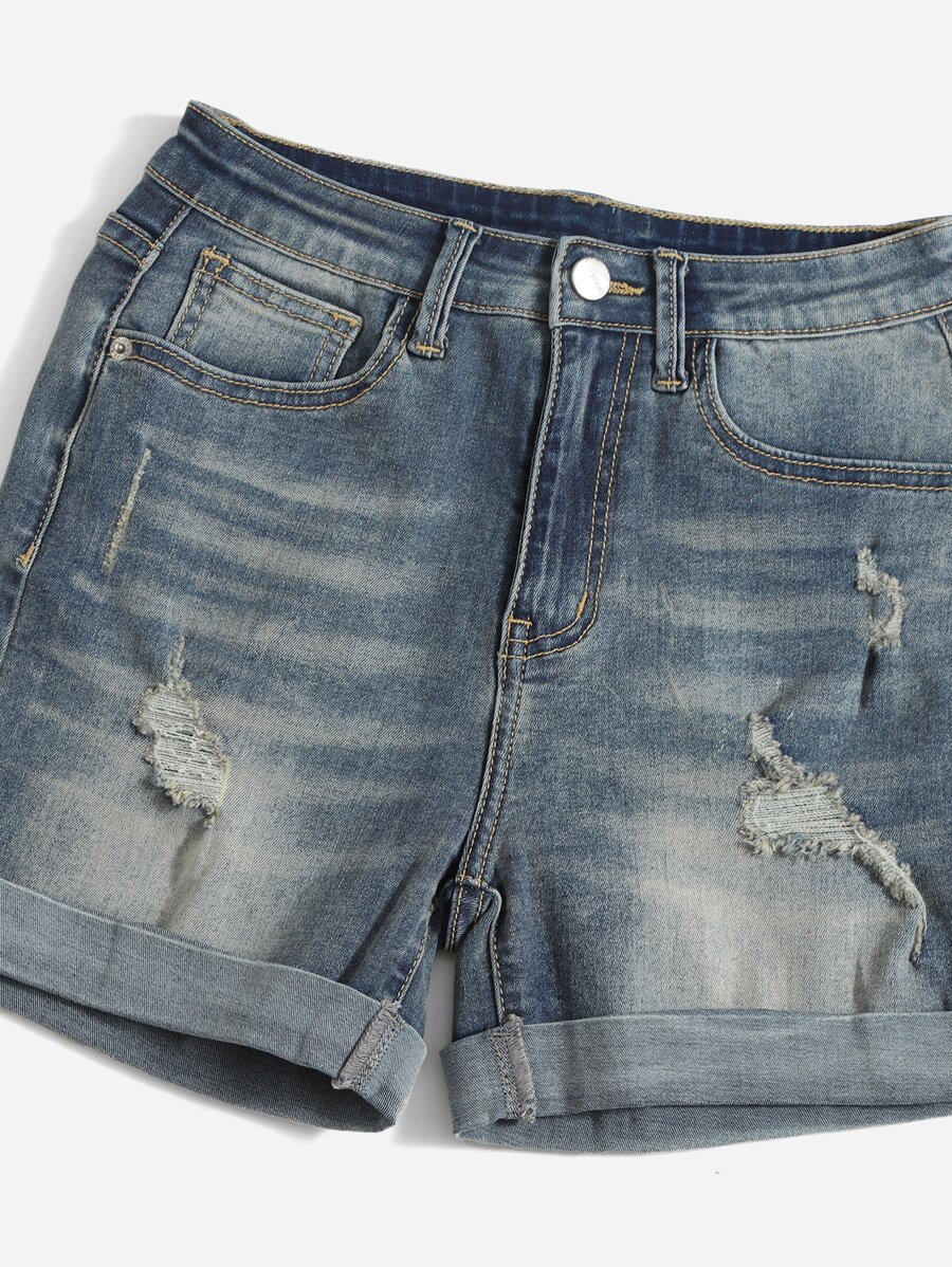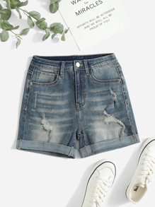 Shorts en mezclilla desgarro bajo de doblez