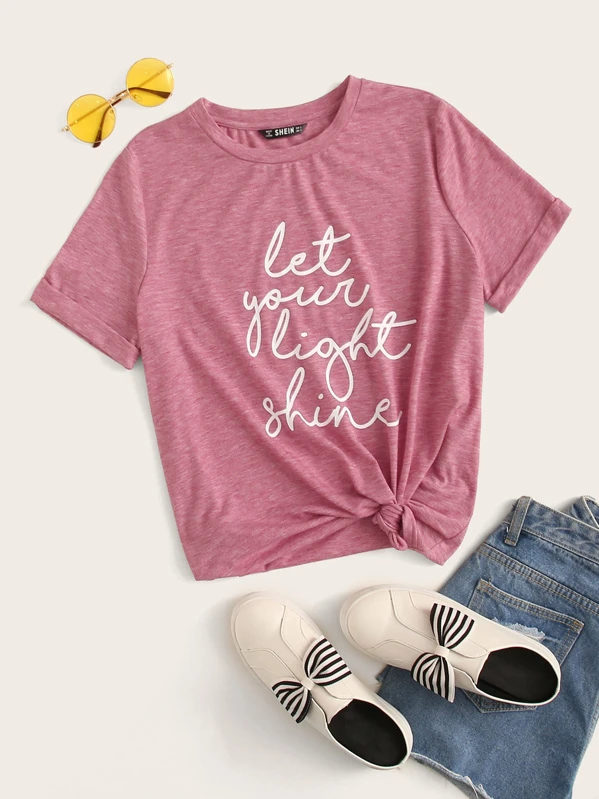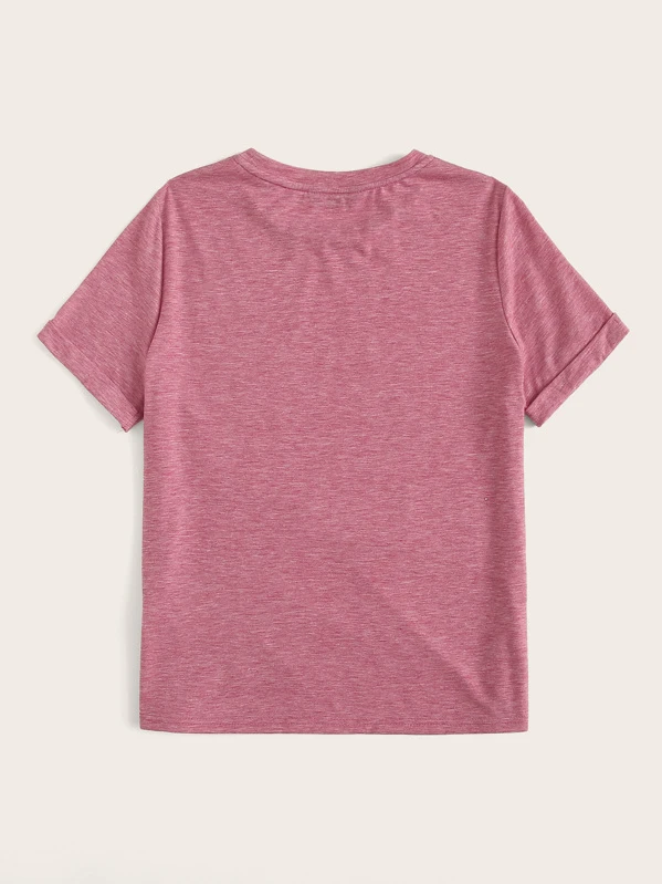 Camiseta con estampado de slogan de puño de doblez