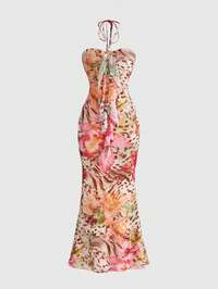 ROMWE Avant Vestido de corte sirena con escote espalda descubierta y cintura baja, con estampado floral de lirio, de gasa, adecuado para resort y vacaciones, en estilo Y2K