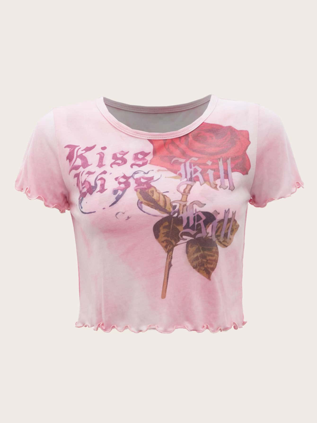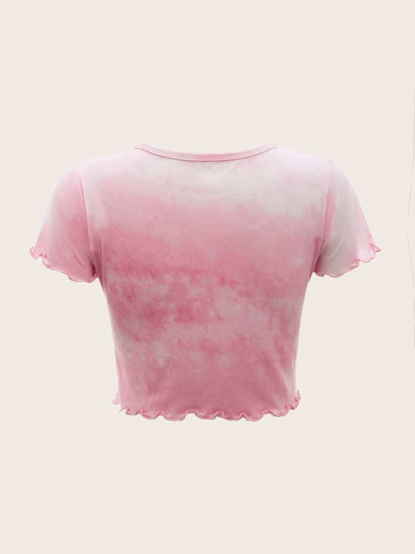 Camiseta con estampado de rosa de tie dye ribete en forma de lechuga