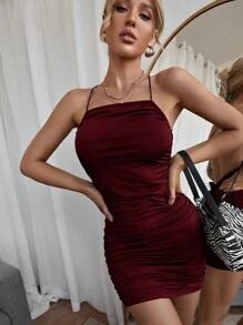 Vestido ajustado de espalda abierta con tira cruzada fruncido