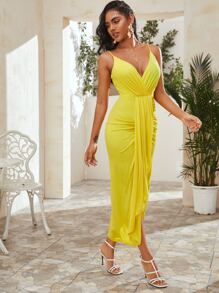 Vestido cruzado con tirante delantero drapeado con diseño fruncido