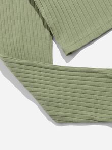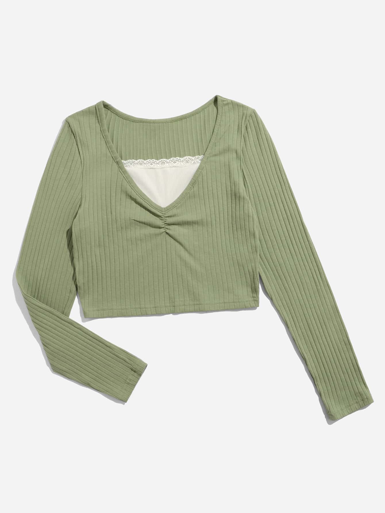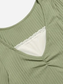 Camiseta fruncido ribete con encaje de canalé