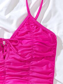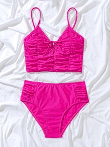 Conjunto de bikini con pliegues y lazo delantero, ideal para el verano y la playa