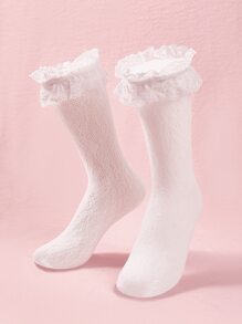 Kawaii Calcetines altos ribete con fruncido con encaje
