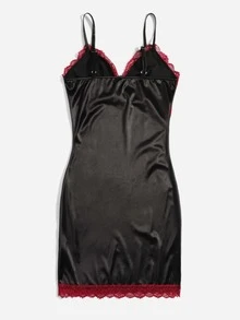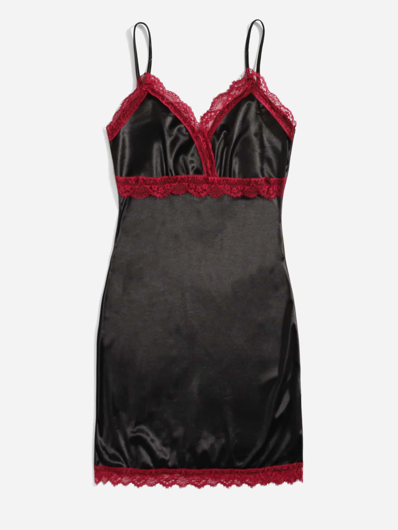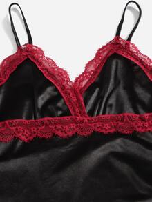 Vestido de tirantes de satén con encaje en contraste