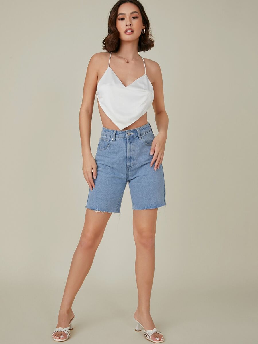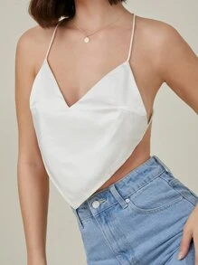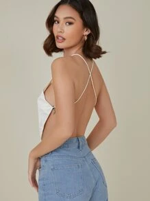 Top de tirantes de satén de espalda abierta con tiras cruzadas