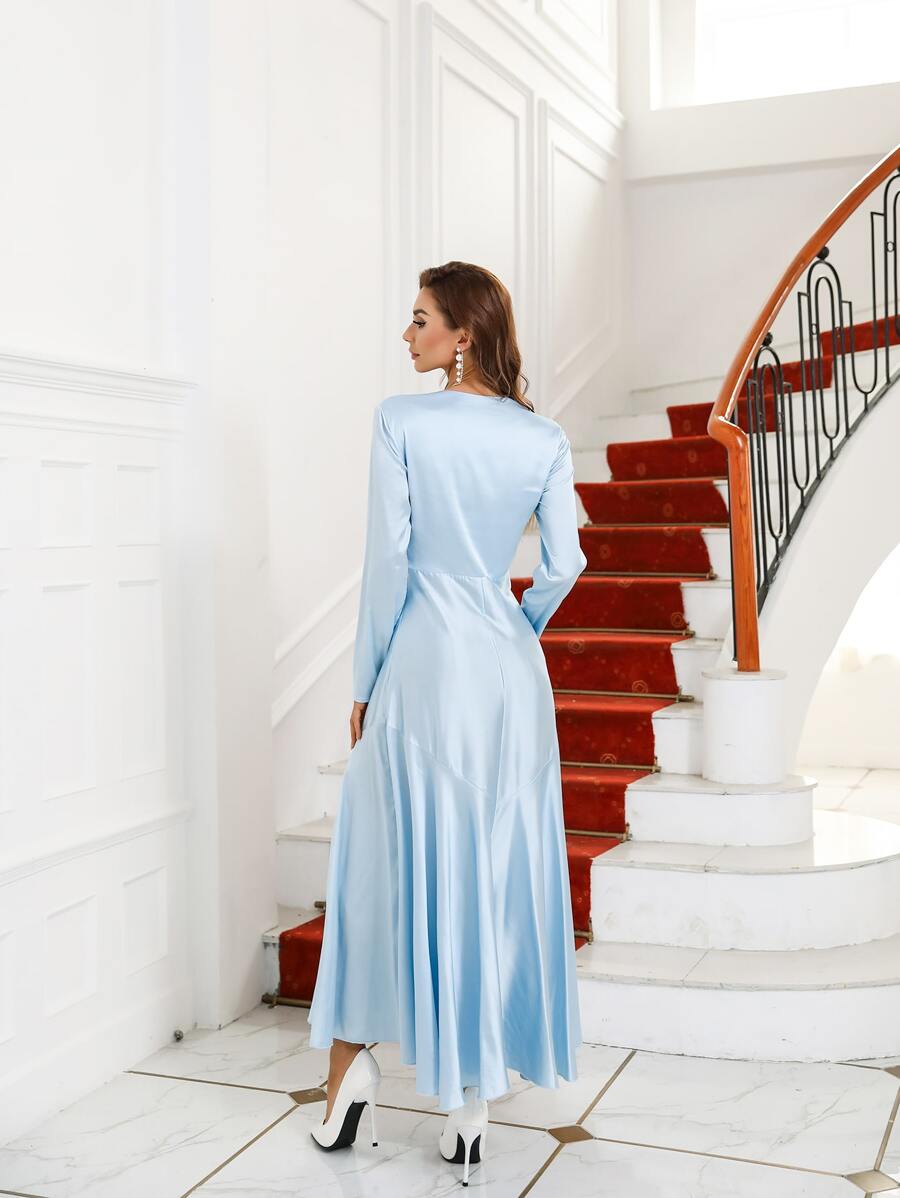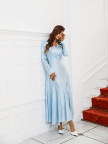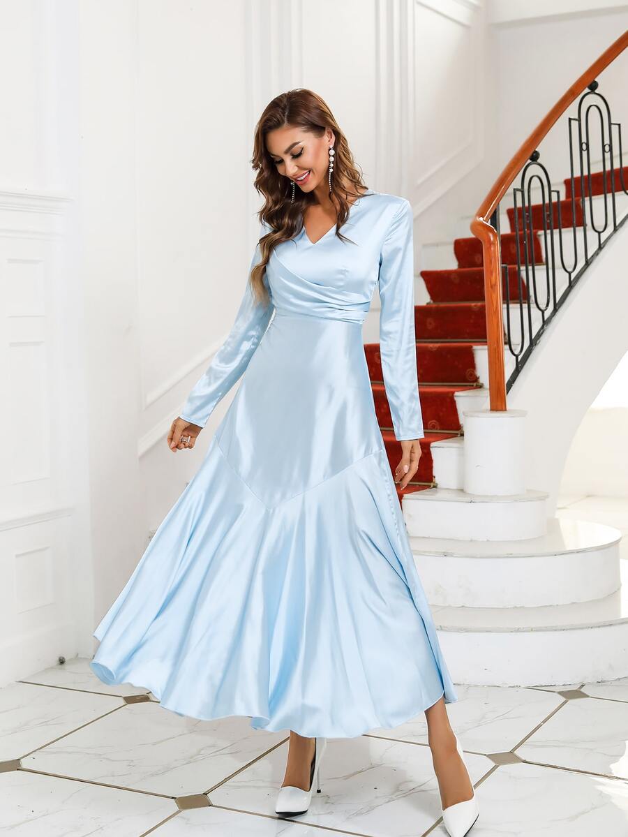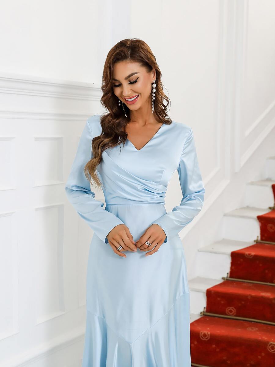 Vestido de fiesta con fruncido escote V de satén