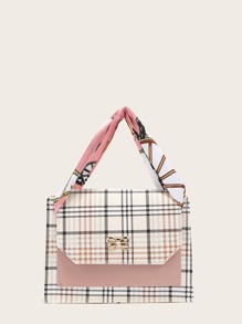 Bolso cartera de cuadros con manija con pañuelo