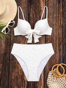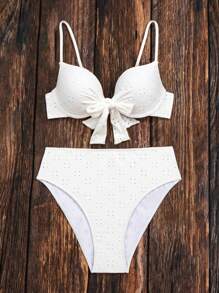 Conjunto de bikini de tiro alto con agarre adelante y push up de Schiffy, ideal para vacaciones en la playa de verano