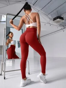 Leggings deportivos inconsútil tejido de canalé de cintura ancha con diseño fruncido