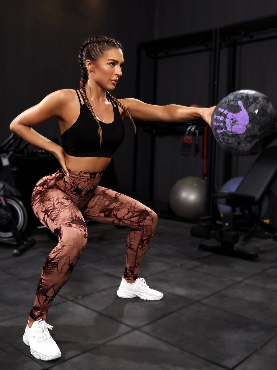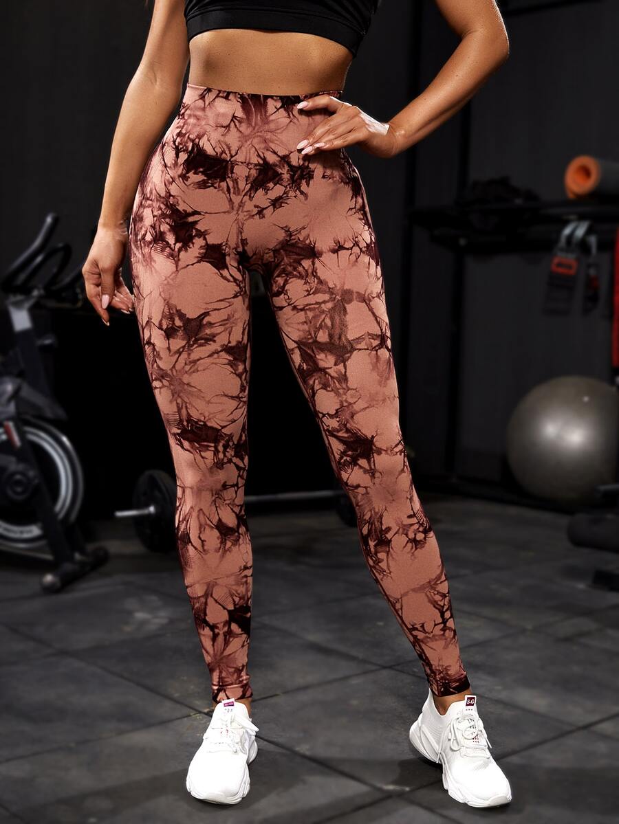 Leggings deportivos inconsútil de cintura ancha de tie dye