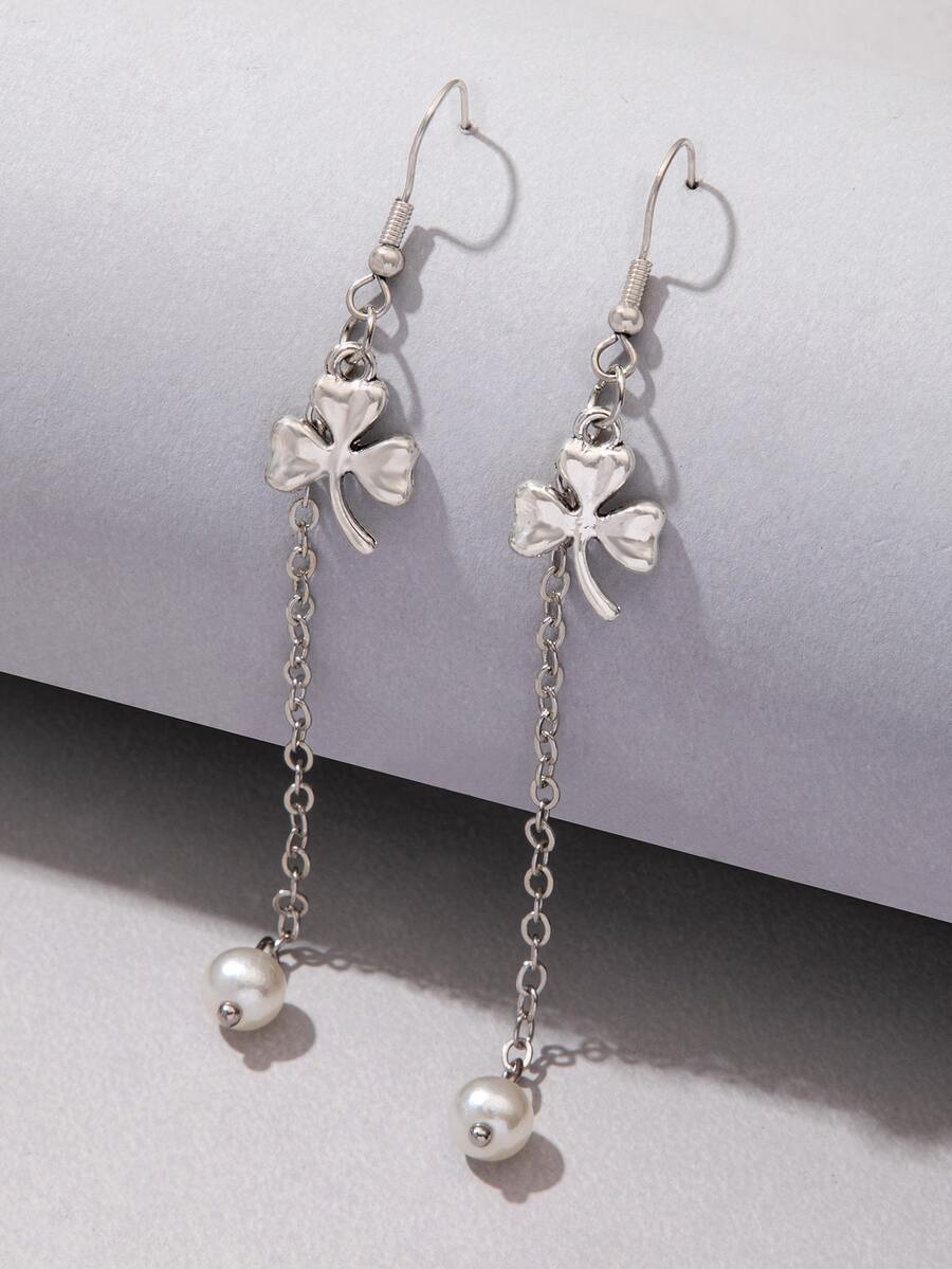 Pendientes largos & con perla artificial