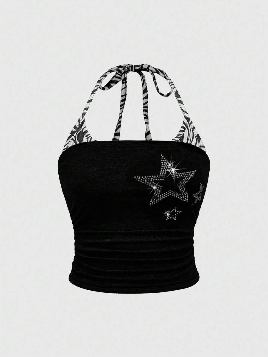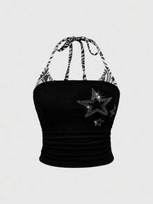 J-Fashion Top con cuello de halter, decoración de strass y estilo Y2K de Shibuya Girl, talla grande