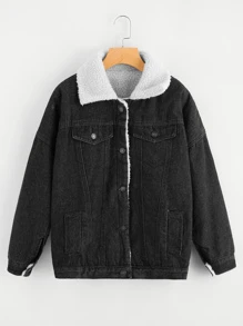 Chaqueta de sherpa en mezclilla con una botonadura