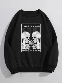 Sudadera esqueleto con con estampado de slogan con forro térmico