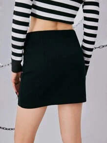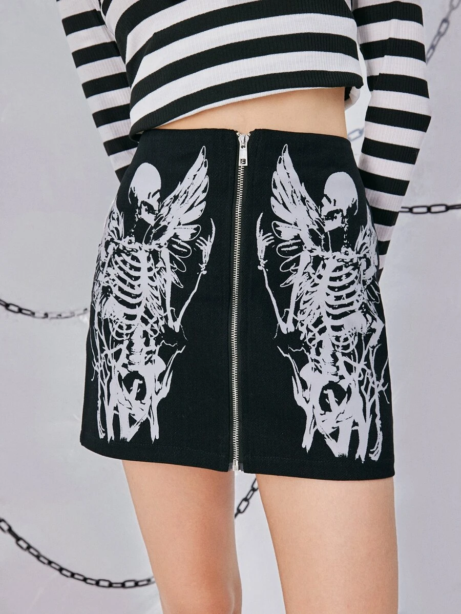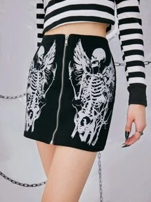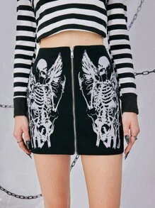 Grunge Punk Falda estampado de esqueleto con cremallera
